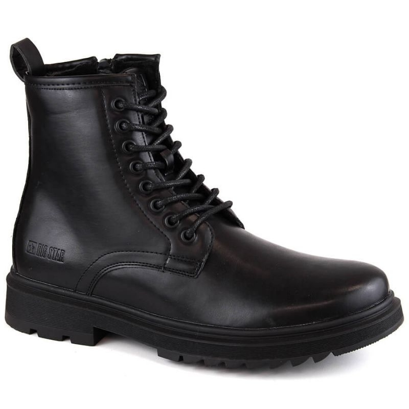 Männerstiefel Big Star M int1915 - Schwarz, isoliert, praktisch und stilvoll. Kombinieren Sie aus hochwertigem ökologischem Leder, das für die Herbst -Gewinn -Jahreszeit entwickelt wurde, den Komfort des Alltags mit der Funktionalität von Schuhen im Freien.