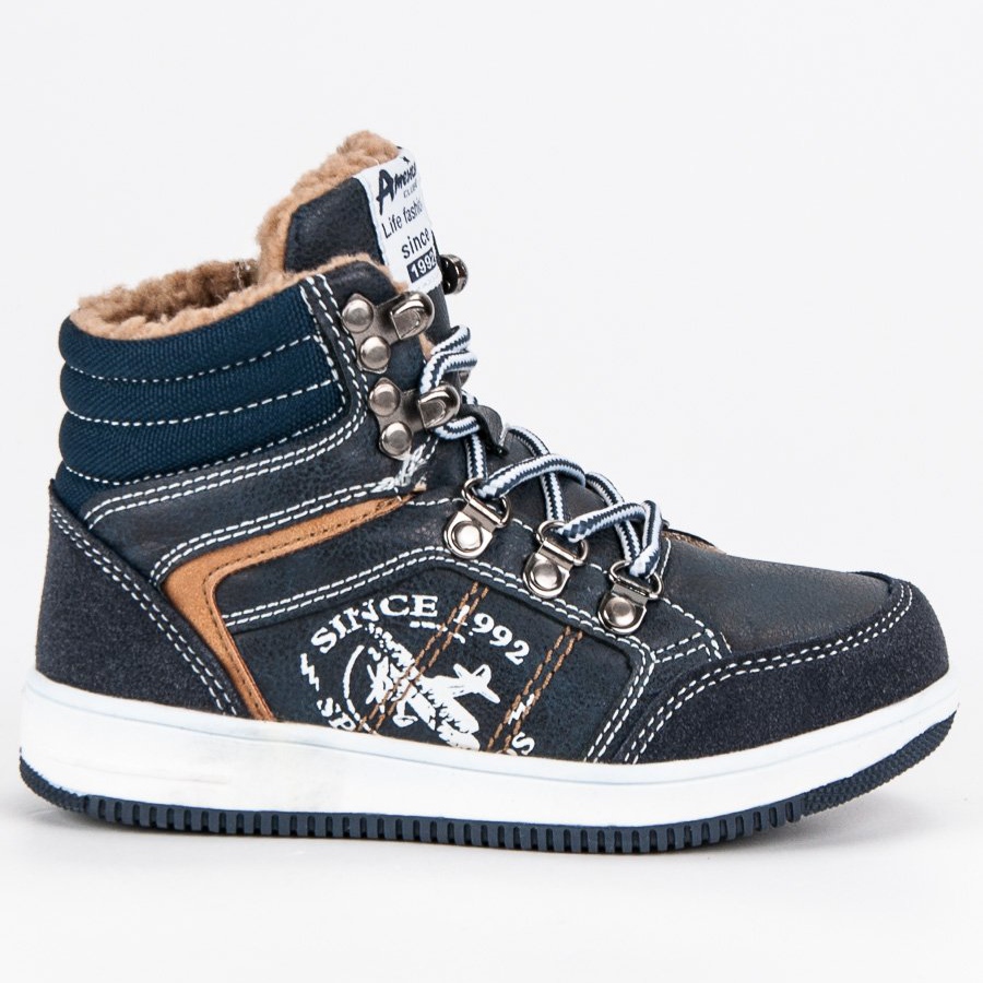 Sorgen Sie mit den isolierten Sneakers von American Club für den Komfort und Stil Ihres aktiven Kleinkindes. Das blaue Obermaterial mit einer dekorativen weißen Flugzeugzeichnung verleiht den Schuhen einen kindlichen Charakter und die langlebige Verarbeitung und die praktischen Lösungen eignen sich perfekt für den täglichen Gebrauch.