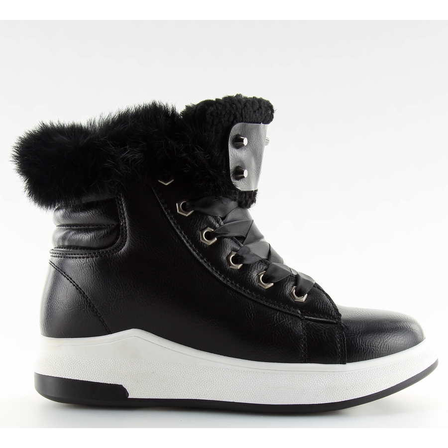 Die eleganten, schwarzen Sportschuhe KB-039 sind die perfekte Kombination aus urbanem Stil und Komfort für kalte Tage. Geschnürt mit einem Satinband, verziert mit Fell am Knöchel und einem modischen Einsatz mit Nieten auf der Zunge ziehen sie die Blicke auf sich und verleihen dem Ganzen einen originellen Charakter. Die Schuhe sind vollständig mit dickem Fell isoliert und eignen sich daher perfekt für Menschen, die Wert auf Wärme und Komfort legen.
