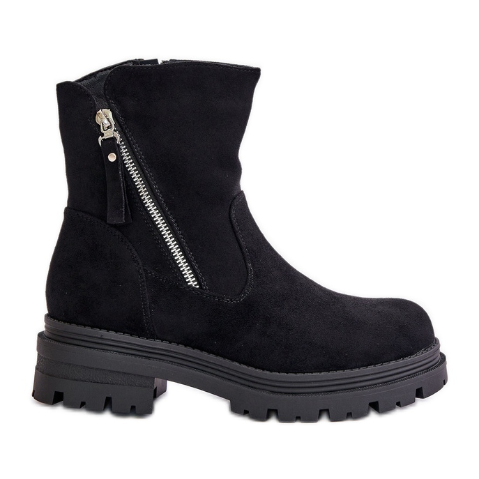 Inna marka Isolierte Stiefeletten mit flachem Absatz aus Öko-Wildleder, Black Reloma schwarz