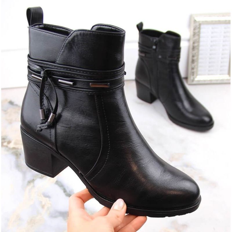Details: Isolierte Stiefeletten mit hohem Absatz und Dekoration Jezzi W JEZ415A, schwarz