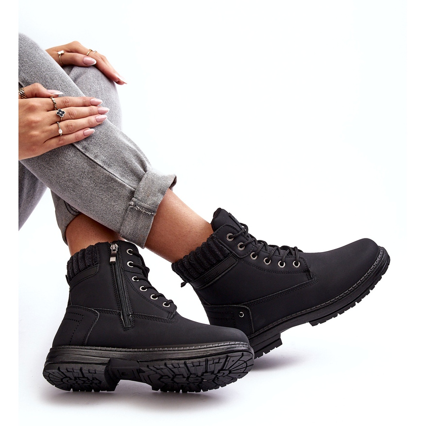 Diese Traper sind durch Isolierung im Inneren gekennzeichnet, was beim Tragen Komfort und Wärme gewährleistet. Sie bieten eine Bequemlichkeit, dank eines auf der Seite platzierten Schiebereglers zu veranlassen, und eine zusätzliche Schnürung ermöglicht die individuelle Anpassung an den Fuß. Die versteifte Ferse garantiert eine angemessene Unterstützung, und das höhere Obermaterial, das nach dem Knöchel greift, sorgt für die Stabilität und lässt die Schuhe in Kombination mit verschiedenen Outfits großartig aussehen.