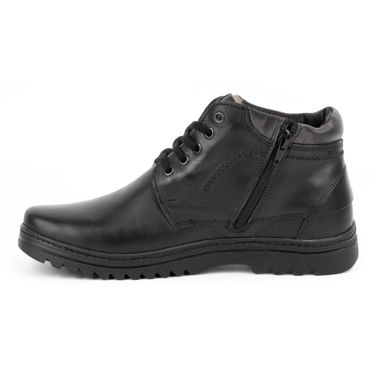Klassische, solide Joker 508J -Stiefel sind ein Winterangriff für Männer, die Komfort, Haltbarkeit und zeitloses Erscheinungsbild bewerten. Der äußere Teil des Schuhs besteht aus natürliches Leder in einer eleganten schwarzen Farbe, während der Innenraum mit natürlicher Wolle ausgekleidet ist, was auch bei niedrigen Temperaturen Wärme liefert.