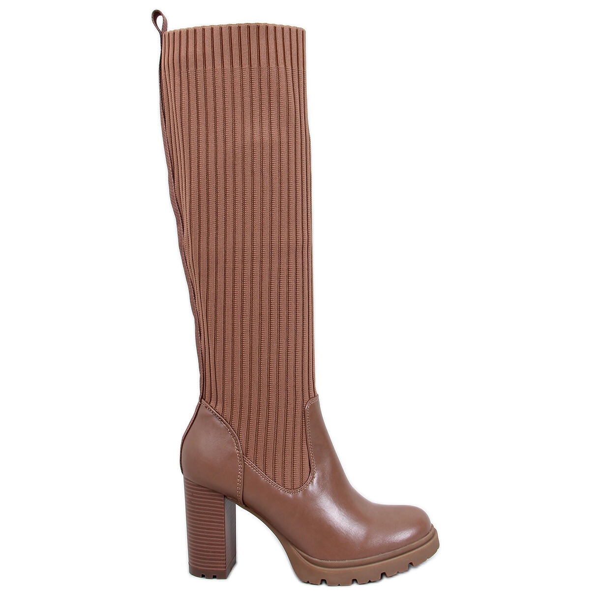 Details: Jaida Khaki-Stiefel mit hohem Absatz und elastischem Obermaterial braun