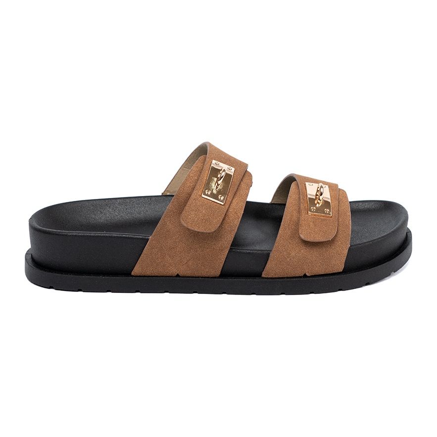 Details: Shelvt Jansnobrowe Damenflip Flops mit goldenen Einsätzen