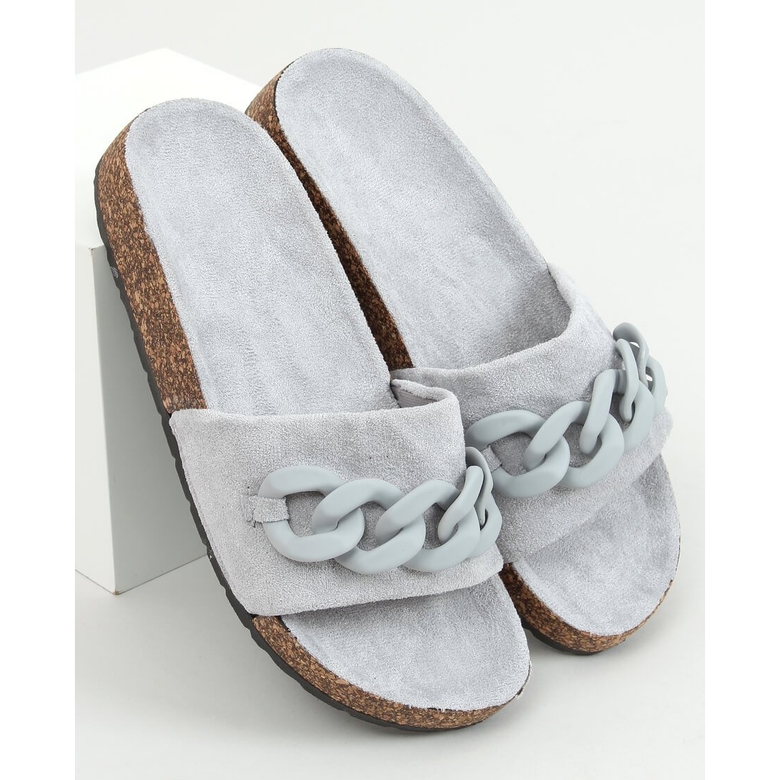 Entdecken Sie sommerliche Eleganz mit Jarvis Grey Kork-Pantoletten mit Kette in Grau. Diese einzigartigen Damen-zehenstegsandalen aus hochwertigem, ökologischem Wildleder vereinen Stil und Komfort und sind perfekt für den täglichen Gebrauch. Der breite Riemen und der profilierte Inneneinsatz sorgen für außergewöhnlichen Komfort bei jedem Schritt, sodass Sie damit problemlos lange Strecken zurücklegen können.
