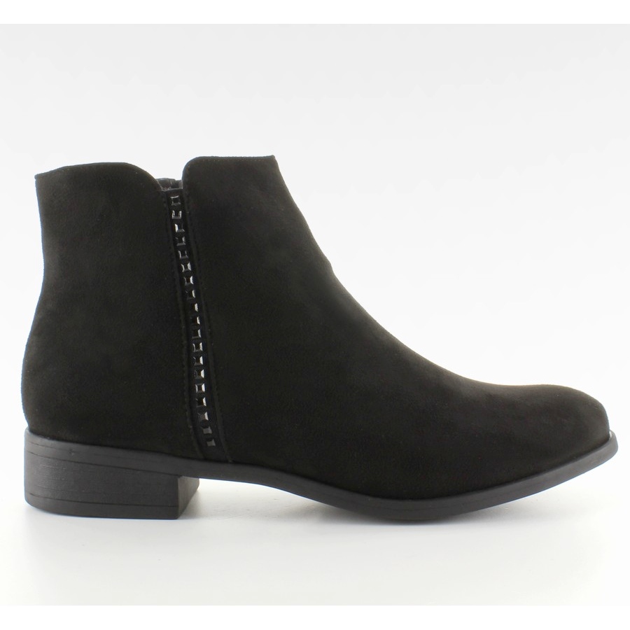 Wildleder-Stiefeletten mit Steinen JK25 Schwarz – elegante, warme und bequeme Damen-Stiefeletten.
