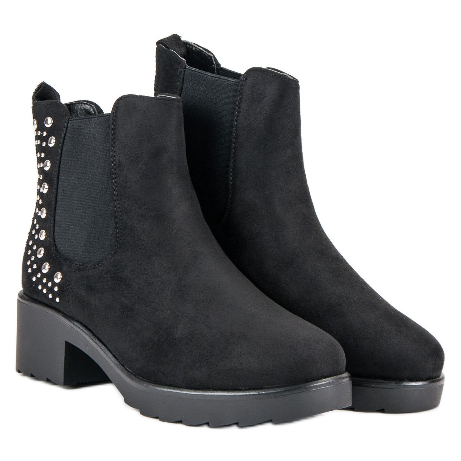 Durch die elegante schwarze Farbe passen diese Stiefel perfekt zu vielen Stilrichtungen – sowohl lässig als auch formeller. Glänzende Strasssteine und Nieten verleihen ihnen einen femininen Charakter, und der 5 cm hohe Absatz ermöglicht Ihnen eine zarte Silhouette, ohne auf Komfort zu verzichten.