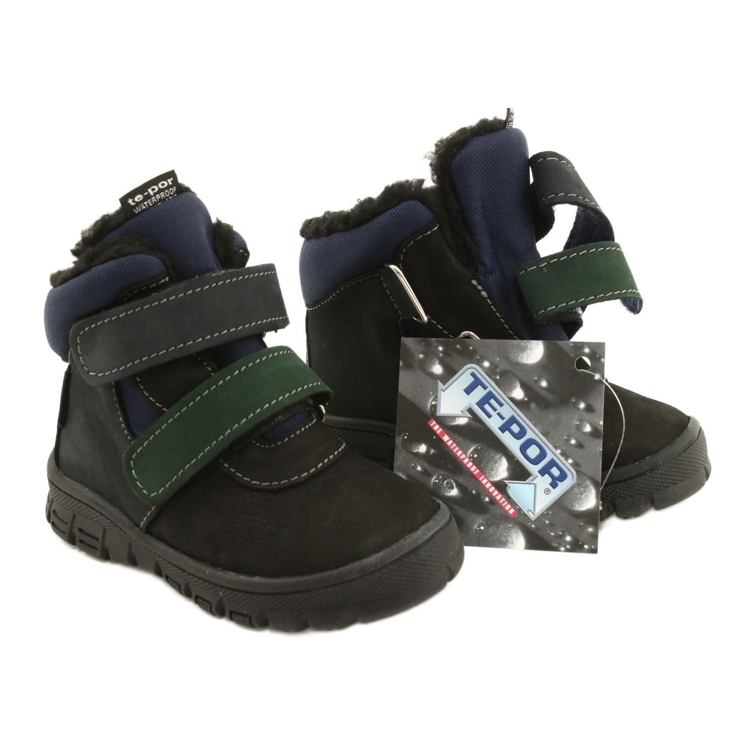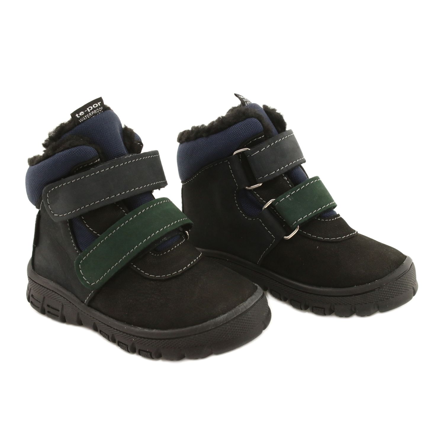 Praktische und feste Stiefel für einen Jungen, der natürliche Haut mit haltbarem Material kombiniert. Ausgestattet mit der TE-POR-Membran (wasserdichte) Membran, dank der die Schuhe wasserdicht für Winterausgaben und Spiele draußen. Das mit weiche Fell isolierte Innenraum sorgt für Wärme, und die versteifte Fersenstabilität stabilisiert und schützt den Knöchel des Kindes.