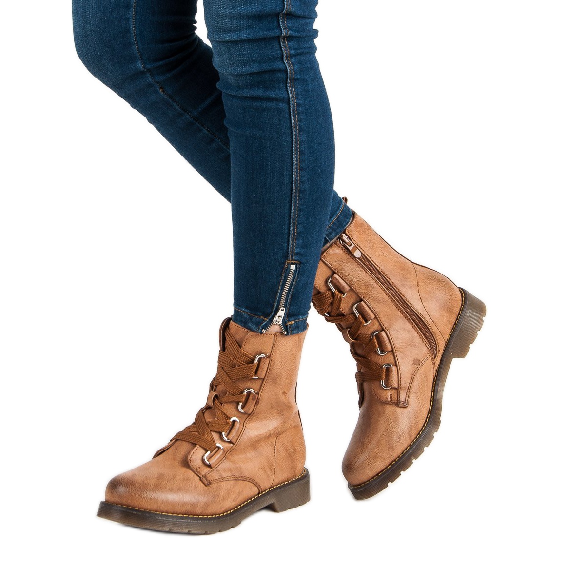SDS-Schnürschuhe in Kamelbraun sind die ideale Wahl für Frauen, die an kälteren Tagen Wert auf Komfort und Stil legen. Diese modischen braunen Worker sind dank ihres schmalen Schafts, der bis über den Knöchel reicht, und einem bequemen flachen Absatz von 3,0 cm die perfekte Wahl für Herbst und Winter.