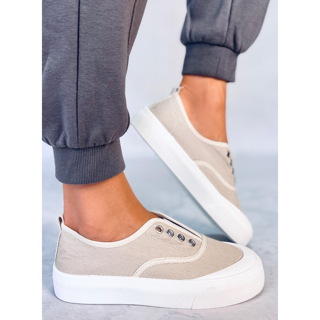 Der Hersteller dieser Schuhe ist BM, eine Marke, die für die Herstellung von Schuhen bekannt ist, die Funktionalität mit aktuellen Trends verbinden. Dank der flachen Sohle aus hochwertigem Gummi sind diese Sneaker äußerst stabil, was auf verschiedenen Untergründen ein großer Vorteil ist. Durch den schlichten, glatten und einheitlichen Beigeton lassen sie sich problemlos mit vielen Styles kombinieren – von lässigen Jeans bis hin zu Sommerkleidern.