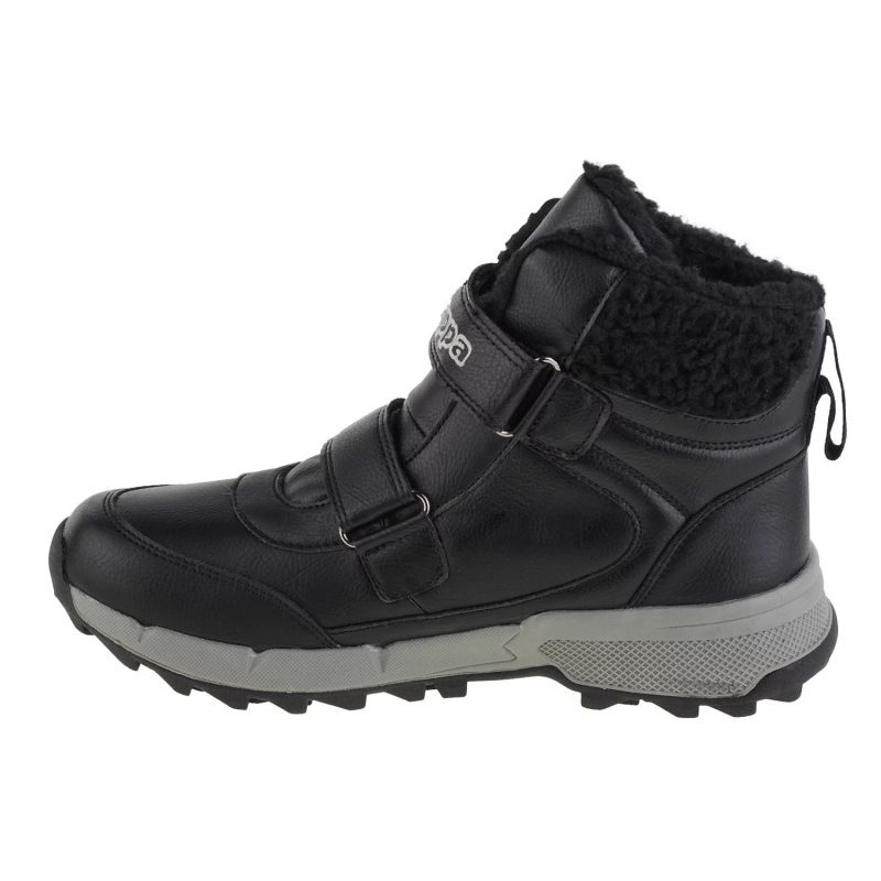 Wir präsentieren Kappa Tapiwa T Jr 260914T-1116 Schuhe in schwarz-die perfekte Wahl für Wintertage für die jüngsten. Diese hohen Schuhe, die mit Klettverschluss befestigt sind, bieten nicht nur Komfort, sondern auch Sicherheit bei Aktivitäten im Freien.