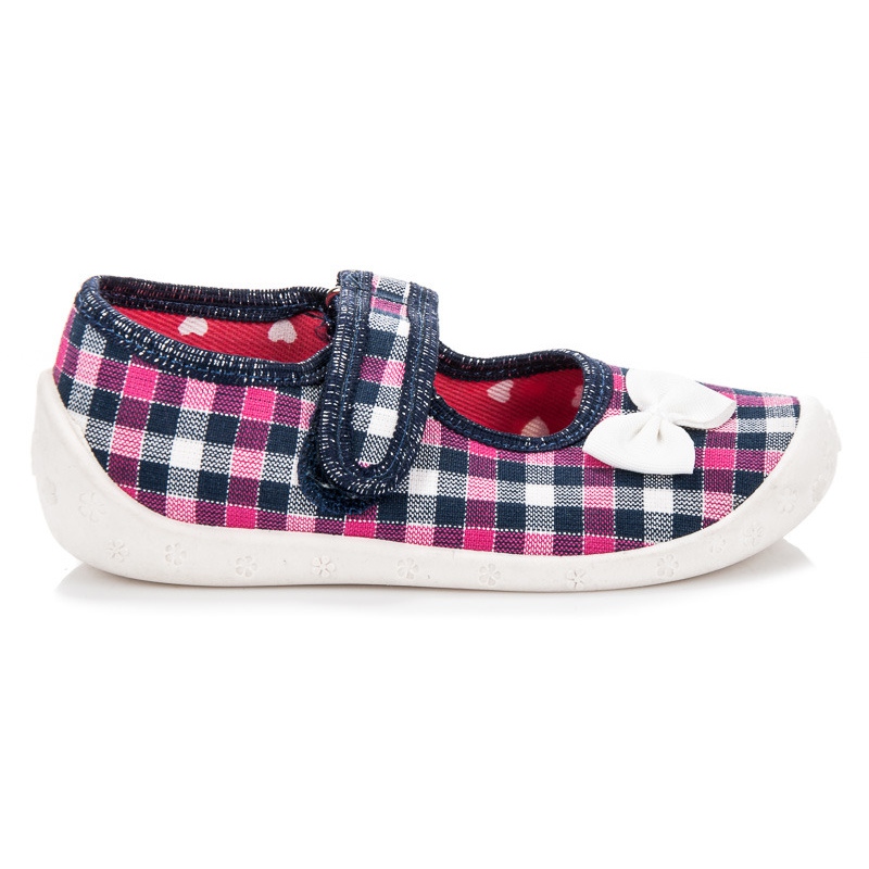 Bezaubernde Kinderhausschuhe von Reweks, speziell für Mädchen entworfen. Das klassische Karomuster mit einer Kombination aus marineblauen und rosa Akzenten macht die Hausschuhe sowohl stilvoll als auch freundlich zu kleinen Füßen.