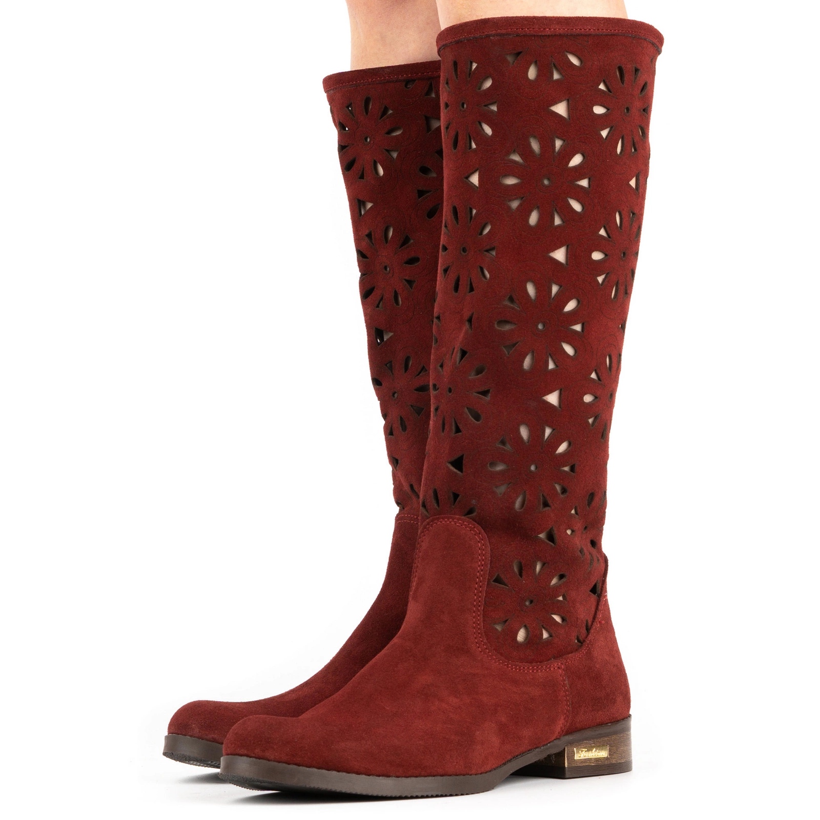 Olivier Olivier Kastanienbraune durchbrochene Stiefel für Damen rot