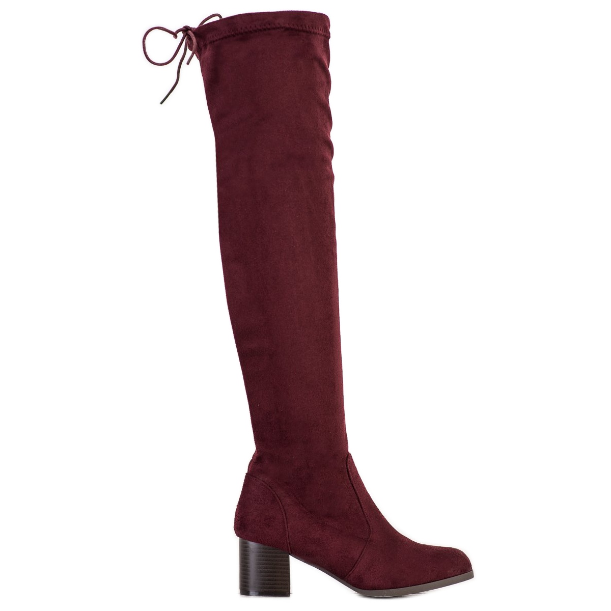 M.Daszyński M.Daszyński Kastanienbraune Stiefel über dem Knie rot