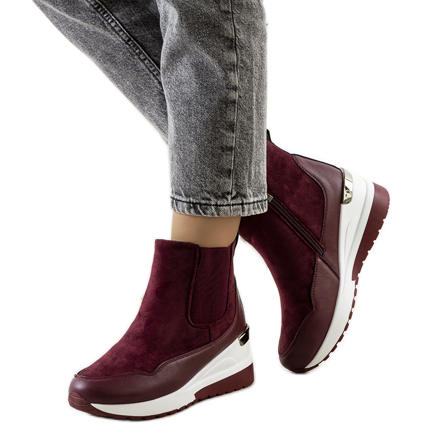 Entdecken Sie außergewöhnliche Eleganz und Komfort in den burgunderroten Keilstiefeletten von Arkala. Diese einzigartigen Schuhe passen nicht nur perfekt in aktuelle Trends, sondern sorgen durch eine leichte Isolierung auf der Innenseite auch für angenehmen Tragekomfort. Aus ökologischem Wildleder gefertigt, sehen sie äußerst stilvoll aus und ihre runde Spitze verleiht dezenten Charme.