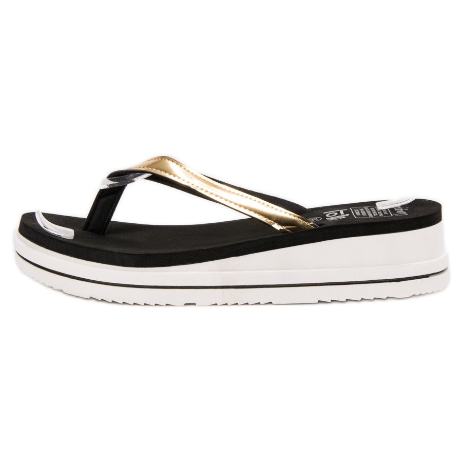 Entdecken Sie die perfekten Sommerschuhe – schwarze Keil-zehenstegsandalen von SHELOVET! Diese eleganten Damen-zehenstegsandalen vereinen Komfort und Stil und sind somit die perfekte Wahl sowohl für den Strand als auch für den Alltag. Mit einer Höhe von 4,5 cm bietet der Keilabsatz ausreichend Stabilität und Komfort beim Gehen, und der goldene Riemen, der den Fuß stützt, sorgt für mühelosen Charme.