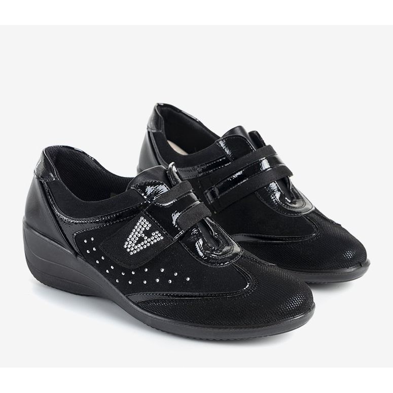Die Schuhe sind in Standardnummern (36-41) erhältlich, wodurch Sie sie leicht an Ihre Bedürfnisse anpassen können. Sie haben eine Mandelspitze und einen Klettverschluss, der das An- und Ausziehen erleichtert. Die Frühjahr/Sommer-Kollektion in der universellen schwarzen Farbe macht dieses Modell für viele Stile geeignet, sowohl für den Alltag als auch für elegantere.