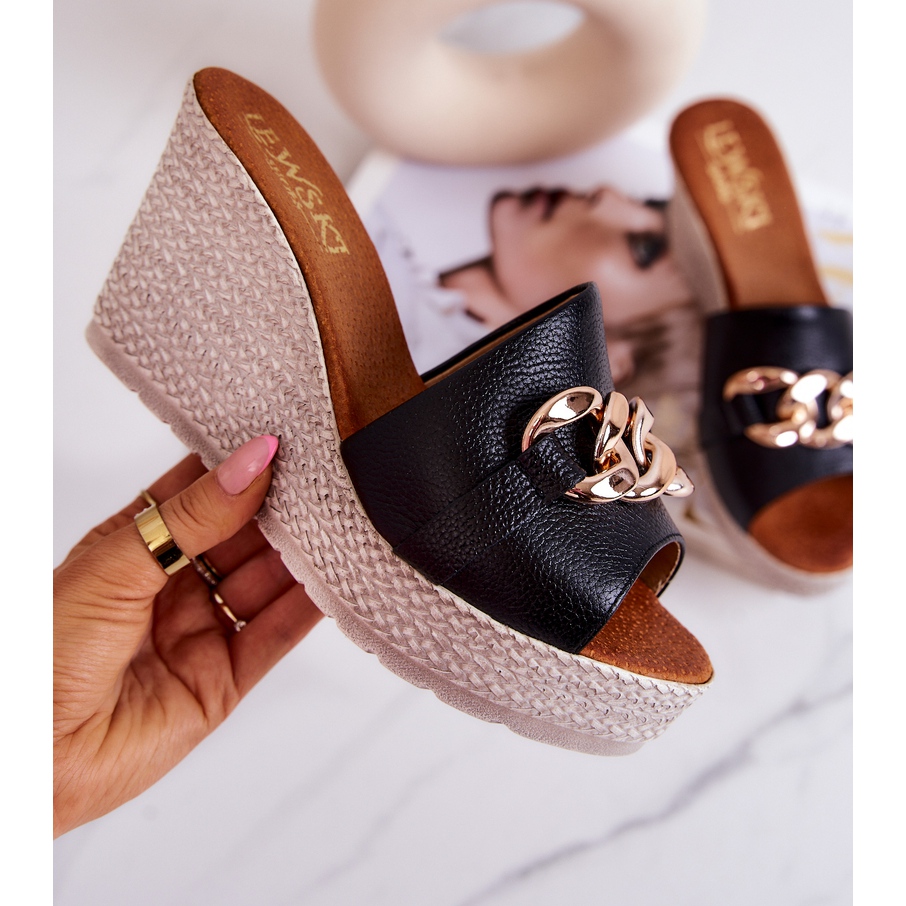 Wir präsentieren die eleganten Leder-Keilpantoletten Lewski 3062 in klassischem Schwarz, die eine ideale Wahl für Frauen sind, die Wert auf Stil und Komfort legen. Diese einzigartigen Schuhe der renommierten polnischen Marke Lewski Shoes sind vollständig aus Naturleder höchster Qualität gefertigt, was nicht nur Haltbarkeit, sondern auch ein elegantes Aussehen gewährleistet.