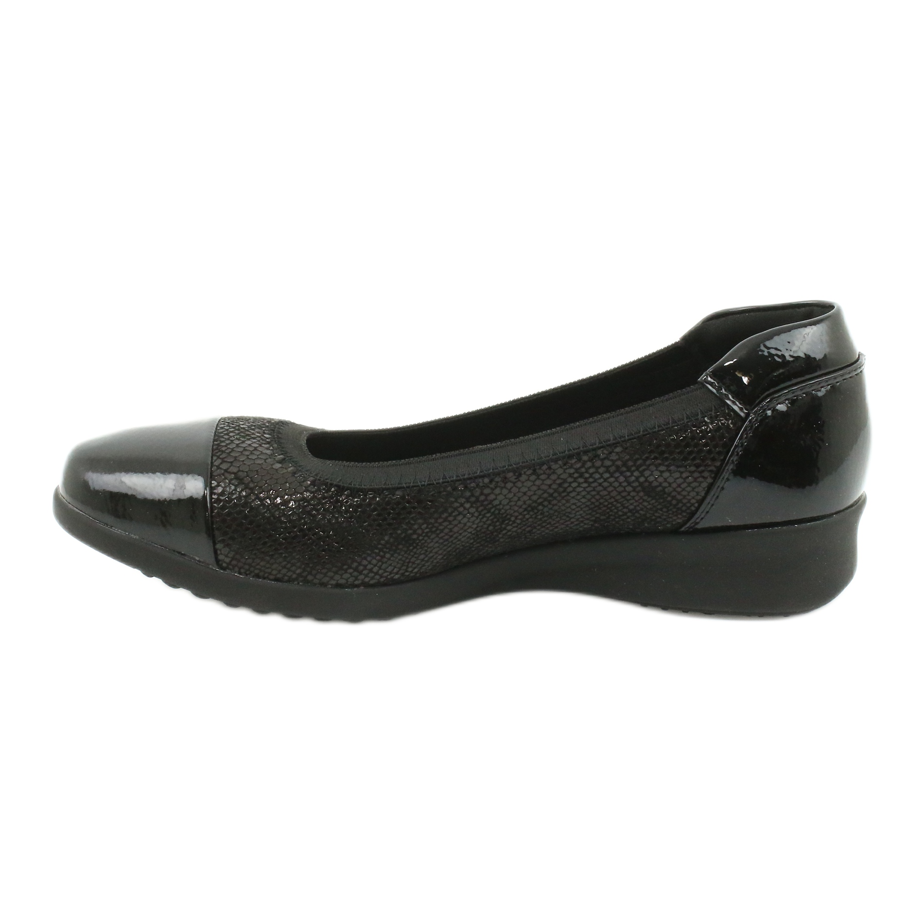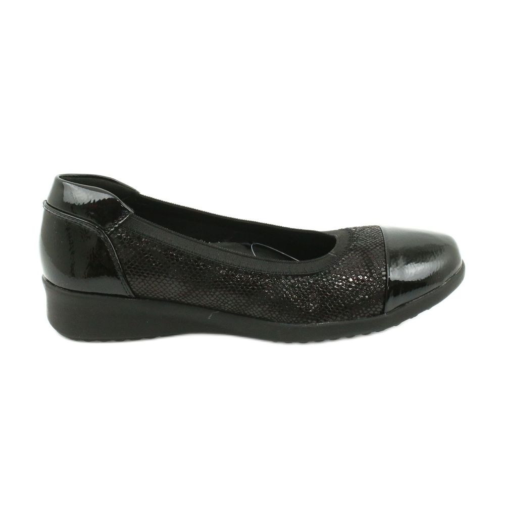 Durch ihre klassische schwarze Farbe passen sie perfekt zu verschiedenen Outfits und verleihen ihnen Eleganz und einen einzigartigen Charakter. Ein niedriger, 3 cm hoher Keilabsatz macht die Pumps zu jeder Tageszeit bequem, und der interessant profilierte Schnitt unterstreicht die Schönheit der Frauenfüße und sorgt gleichzeitig für Stabilität.