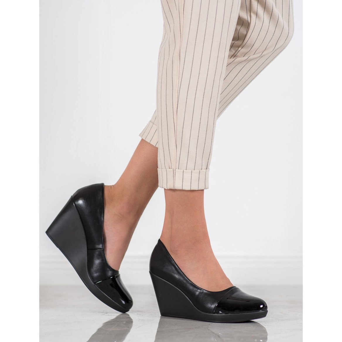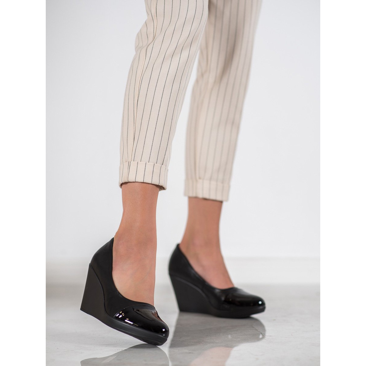 Die Pumps haben eine runde Spitze, die ihnen einen klassischen Look verleiht, und das Slip-on-Verschlusssystem ermöglicht ein schnelles und bequemes Anziehen. Durch die Keilhöhe von 8,5 cm eignen sie sich sowohl für den Alltag als auch für besondere Anlässe, wie Feiern oder Abendpartys.