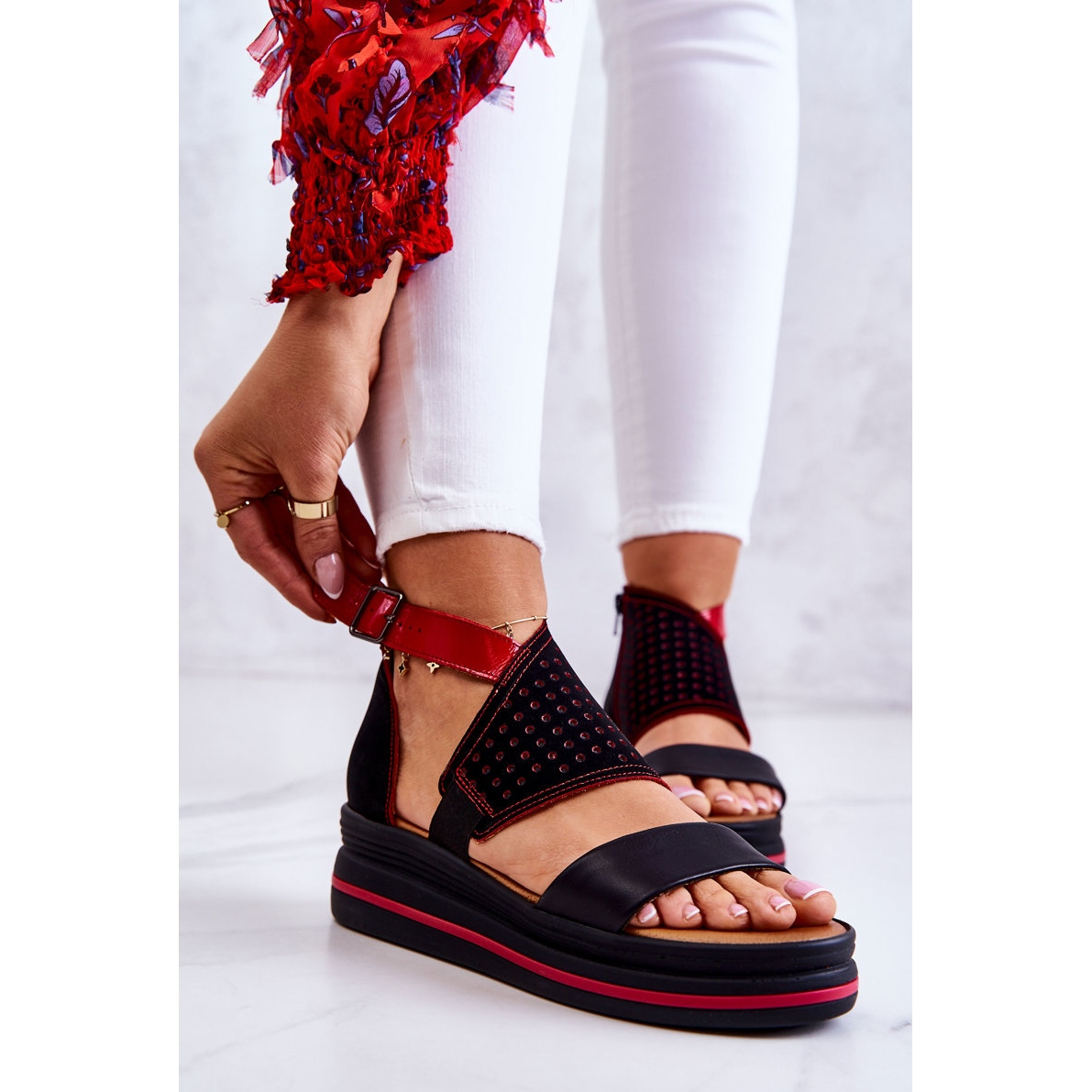 Maciejka Keilsandalen aus Leder Maciejka 05356-01 Schwarz und Rot