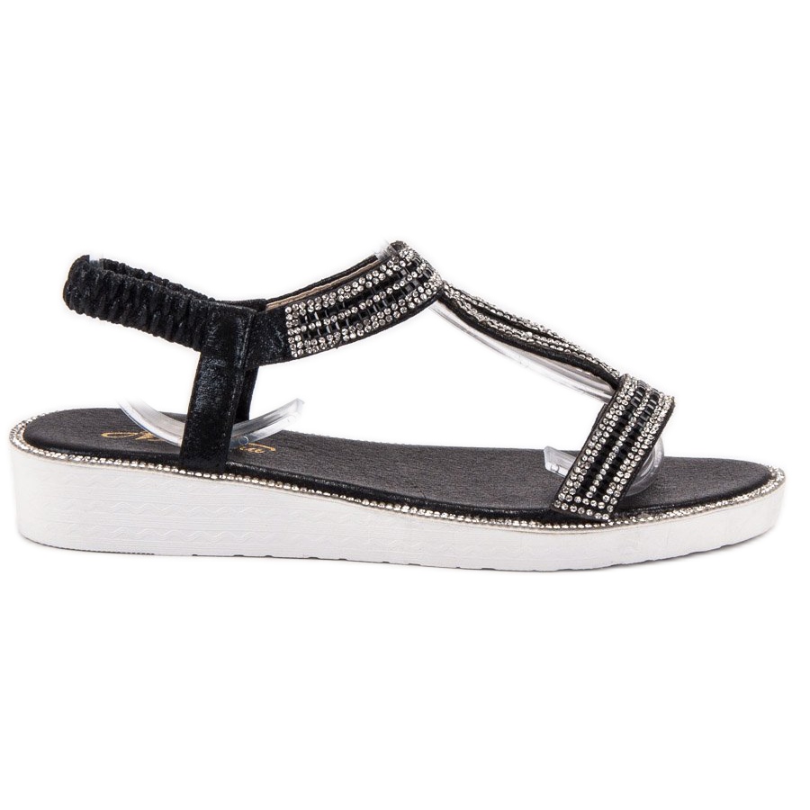 Durch ihr klassisches Design mit einem 3 cm hohen Keilabsatz eignen sie sich sowohl für den Alltag als auch für besondere Anlässe. Durch die schwarze Farbe lässt es sich problemlos mit vielen Stilen kombinieren, von elegant bis leger. Ein zusätzlicher Vorteil sind zarte Akzente in Form von Zirkonen und Strasssteinen, die den Sandalen Eleganz und einzigartigen Charme verleihen.