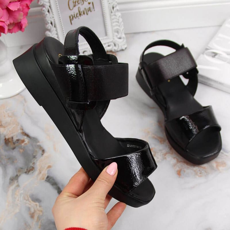 Klassische, schwarze Plattform -Sandalen in WOL75A sind ein Vorschlag für Frauen, die Komfort und universelle Stil schätzen. Die leicht erhöhte Plattform (5 cm) gewährleistet die Stabilität und die optische Verlängerung der Beine, und die Klettversorgung macht die Sandalen einfach und schnell zu veranlassen.