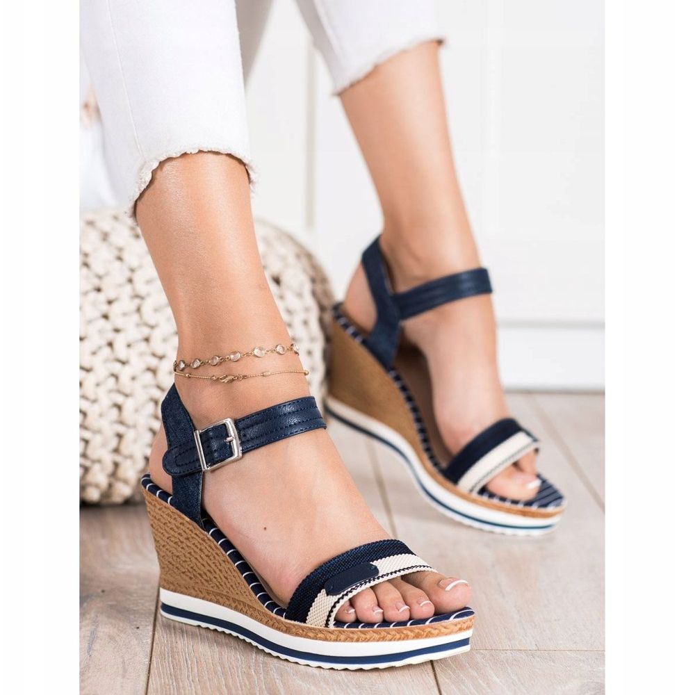 Details: SHELOVET Keilsandalen marineblau
