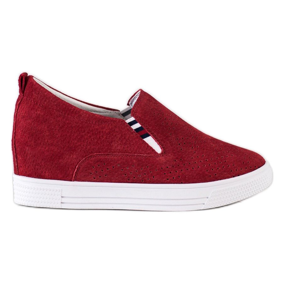 Das Schuhwerk zeichnet sich durch einen versteckten Keilabsatz mit einer Höhe von 6,5 cm aus, der die Beine wunderbar schlanker macht und gleichzeitig für Stabilität beim Gehen sorgt. Das Fersendesign ist verstärkt und weich, was den ganzen Tag über Tragekomfort gewährleistet. Die hervorragende Verarbeitungsqualität dank der Verwendung von 100 % Naturleder sowohl in der Außen- als auch in der Innenschicht macht die Schuhe nicht nur stilvoll, sondern auch langlebig und bequem.