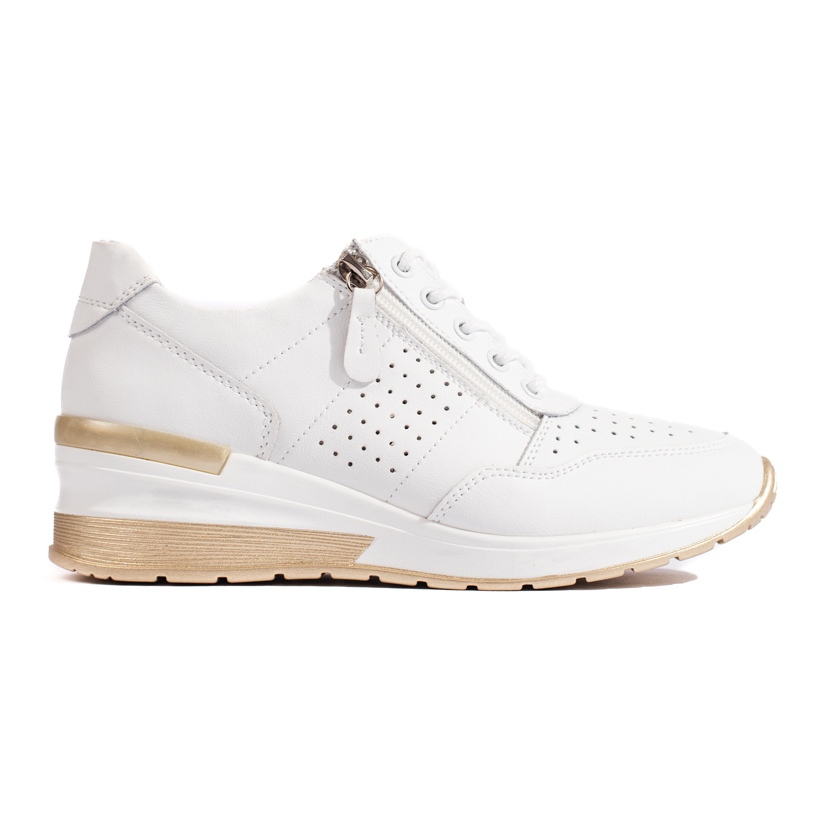 Hier sind sie – weiße Keilsneaker aus Leder von Inna, die Komfort und einzigartigen Stil vereinen. Diese Damen-Sportschuhe sind eine tolle Wahl für den täglichen Gebrauch, perfekt für Frauen, die gleichzeitig Wert auf Mode und Komfort legen.
