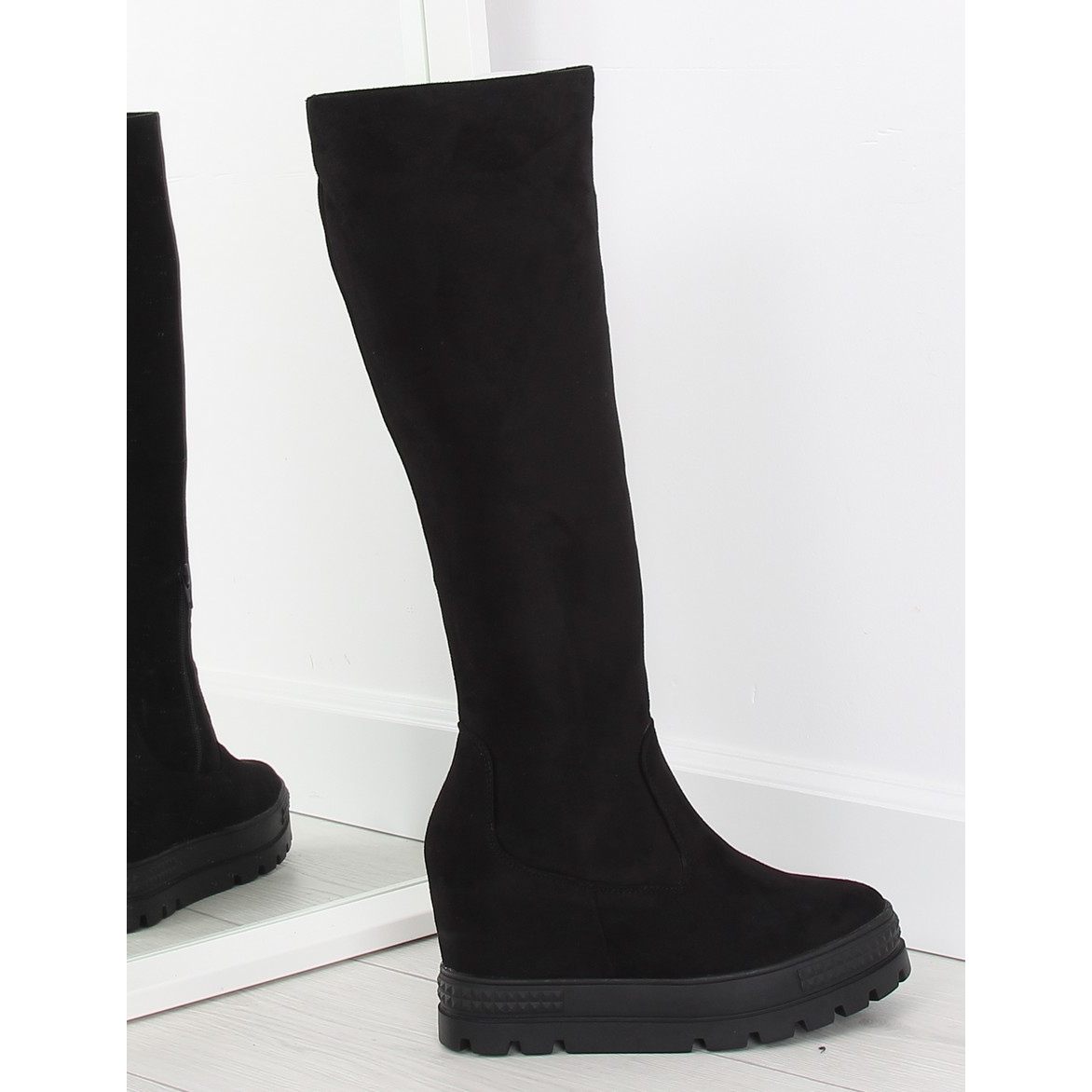 Wir präsentieren schwarze Keilstiefel, die zu einem unverzichtbaren Bestandteil Ihrer Wintergarderobe werden. Diese eleganten Damen-Schneestiefel, die sich durch einen 9 cm hohen Keilabsatz und ein 3,5 cm hohes Plateau auszeichnen, verbinden Stil mit Komfort. Die solide Sohle mit Protektor isoliert hervorragend vor dem kalten Boden und ist somit perfekt für kältere Tage.