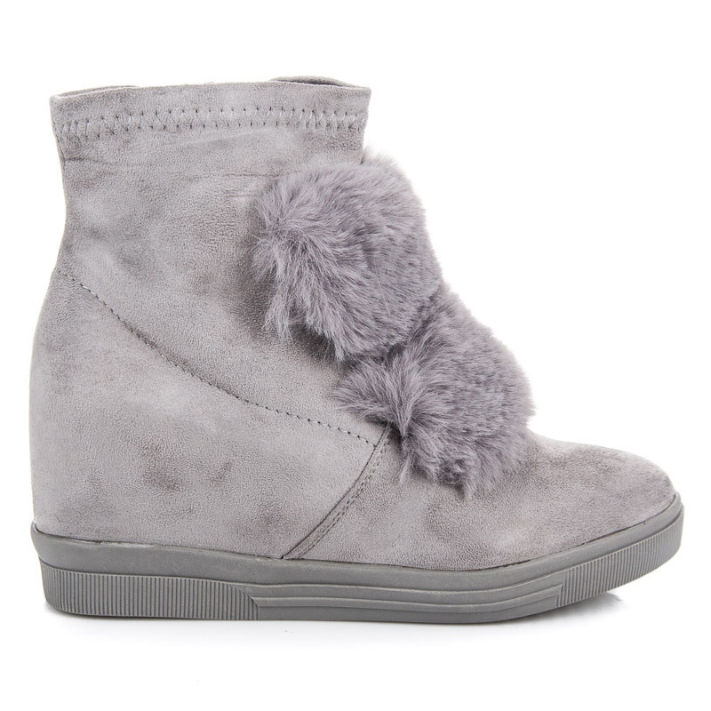 Graue Keilsneaker mit Fell sind das perfekte Schuhwerk für kältere Tage und vereinen Eleganz, Stil und Komfort. Diese hohen Damenschuhe bestehen aus hochwertigem, ökologischem Wildleder und sind mit weichem Fell angereichert, das Ihre Füße umhüllt und bei winterlichen Bedingungen für thermischen Komfort sorgt.