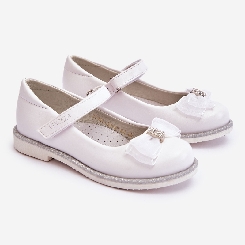 Vinceza Vinceza Kinder Ballerinas mit Klettverschluss und dekorativer Schleife Weiß Nadia