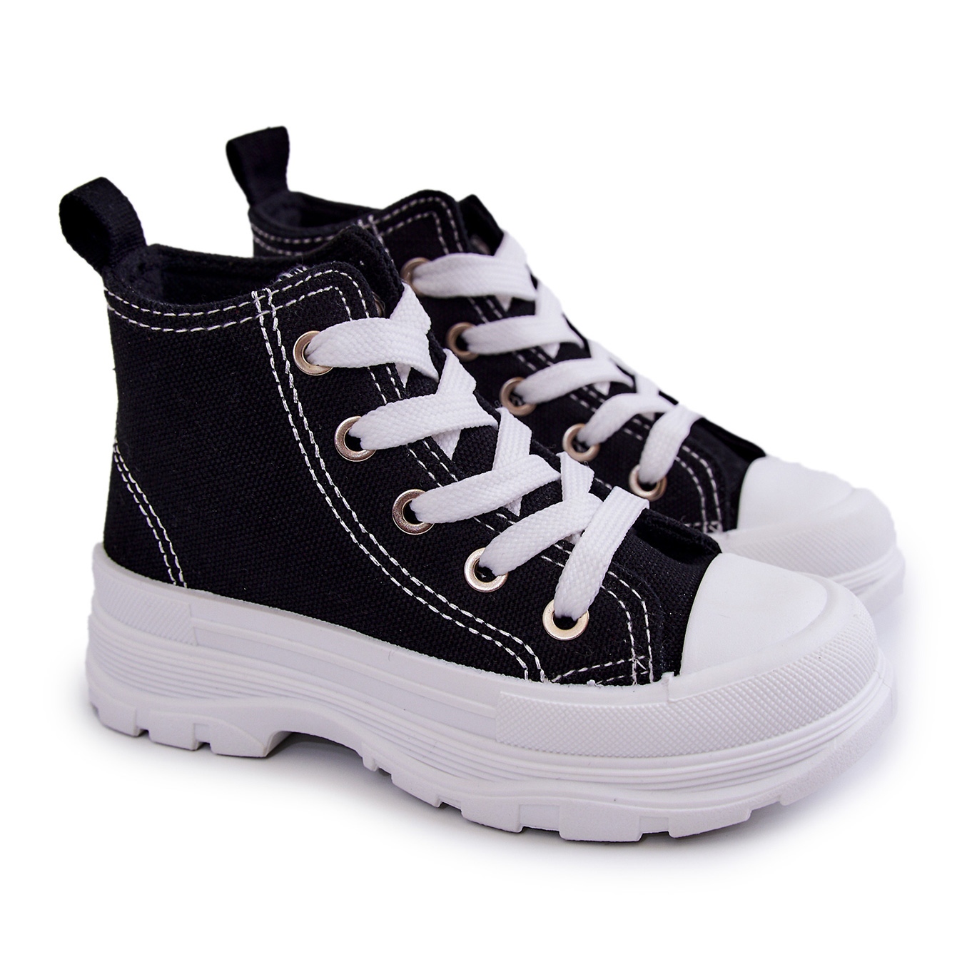 Die Sneaker sind in einem eleganten Schwarz mit weißen Akzenten erhältlich, wodurch sie zu vielen Stilen passen. Die Schafthöhe beträgt bei Größe 24 7,5 cm, die flache Sohle mit einer Höhe von 1,5 cm sorgt zusätzlich für Stabilität.