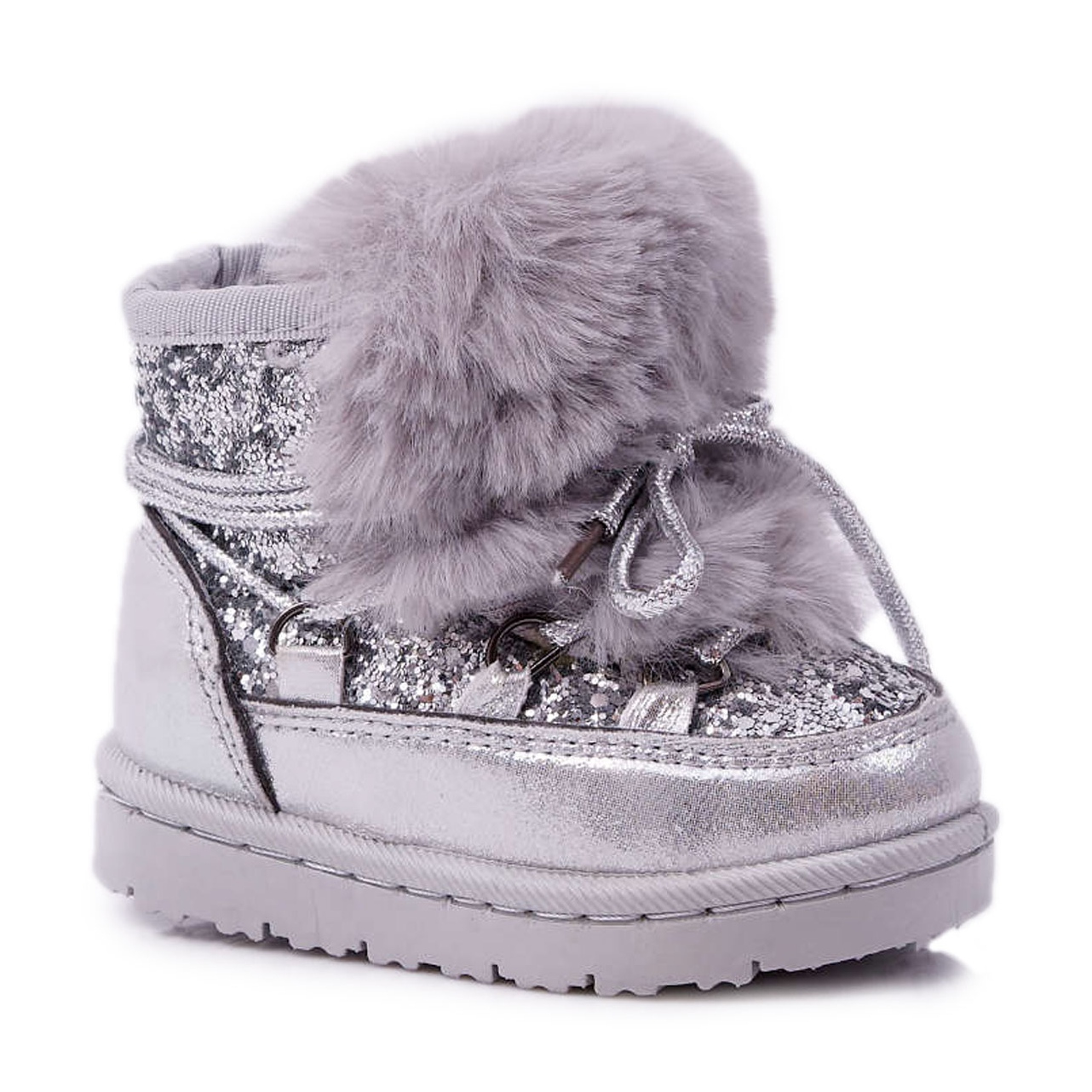 Details: FRROCK Kinder-Schneestiefel mit Fell Silber Minnie Mouse grau