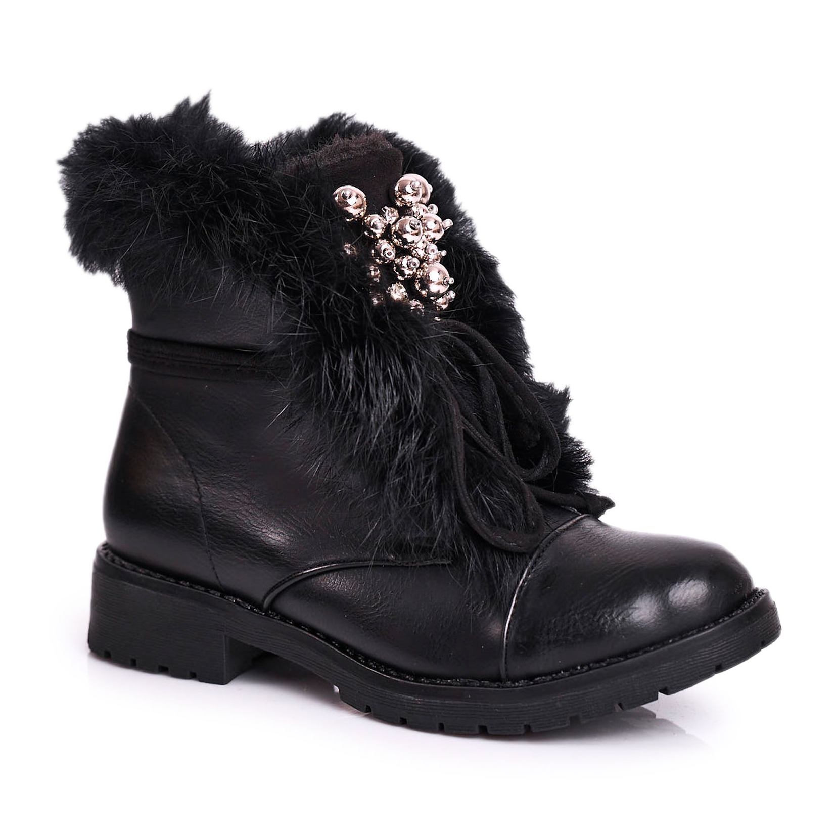 MSMG MSMG Kinder Schwarze Warme Stiefel Pelz Ella