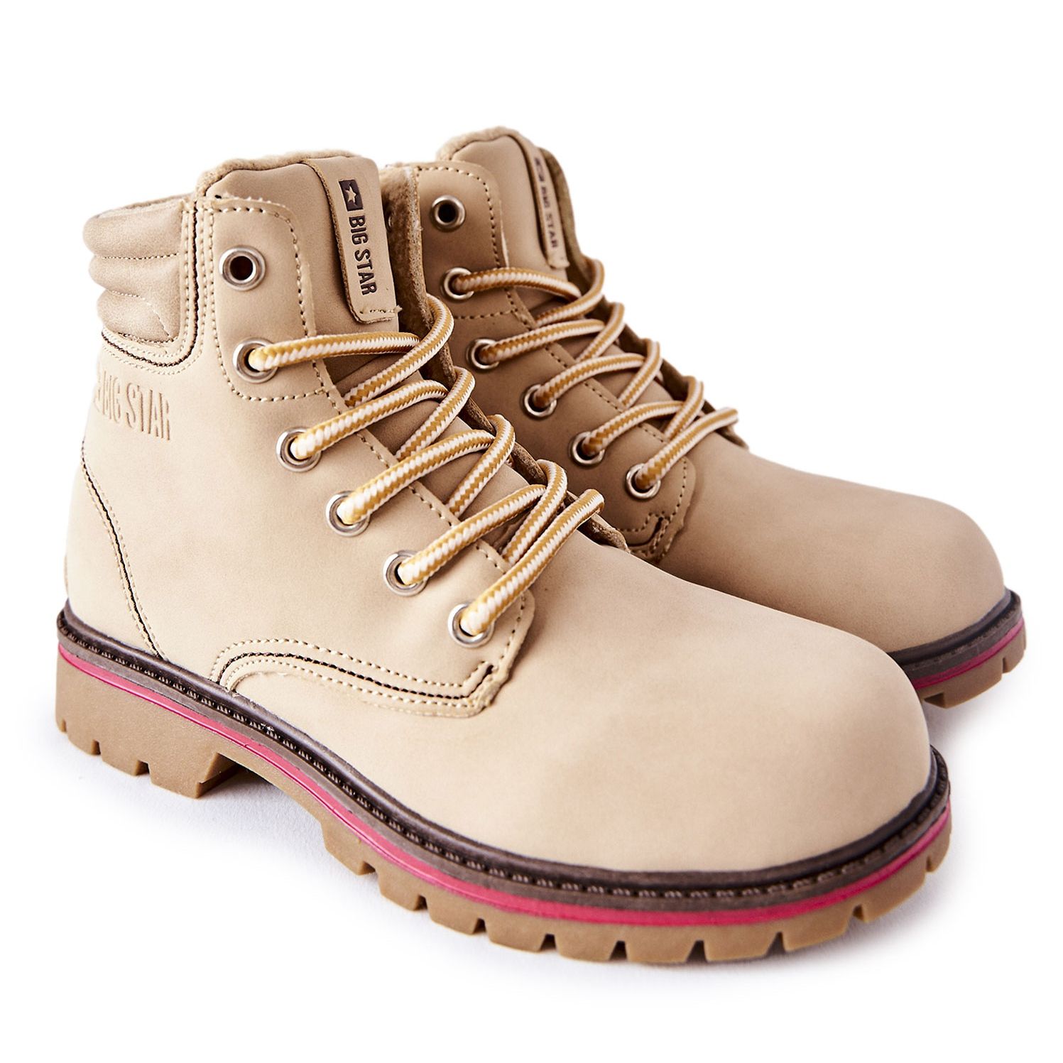 Klassische, stilvolle Big Star Children's Wanderstiefel - vollständig aus ökologischem Leder hergestellt, perfekt für kühlere Tage dank der Isolierung eines weichen Schaffellmantels. Die Schuhe sind geschnürt, und ein zusätzliches Schloss an der Seite erleichtert das Anziehen und Entfernen. Die universelle, beige Farbe passt gut zu vielen Stilen - von alltäglich bis eleganter.