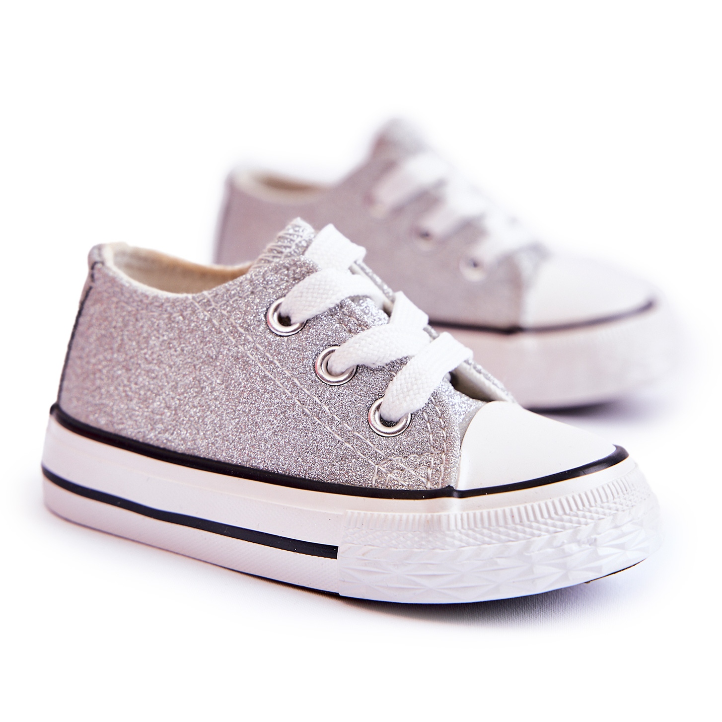 Wella gebundene Kinder -Turnschuhe - Silber, Glitzer
