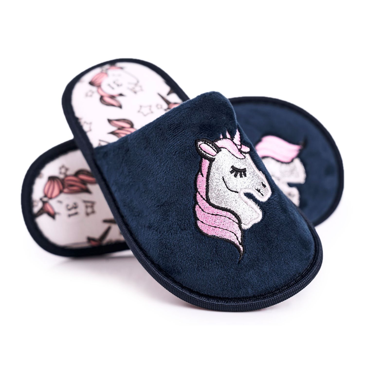 **Kinderhausschuhe mit Einhorn, marineblaues Einhorn**