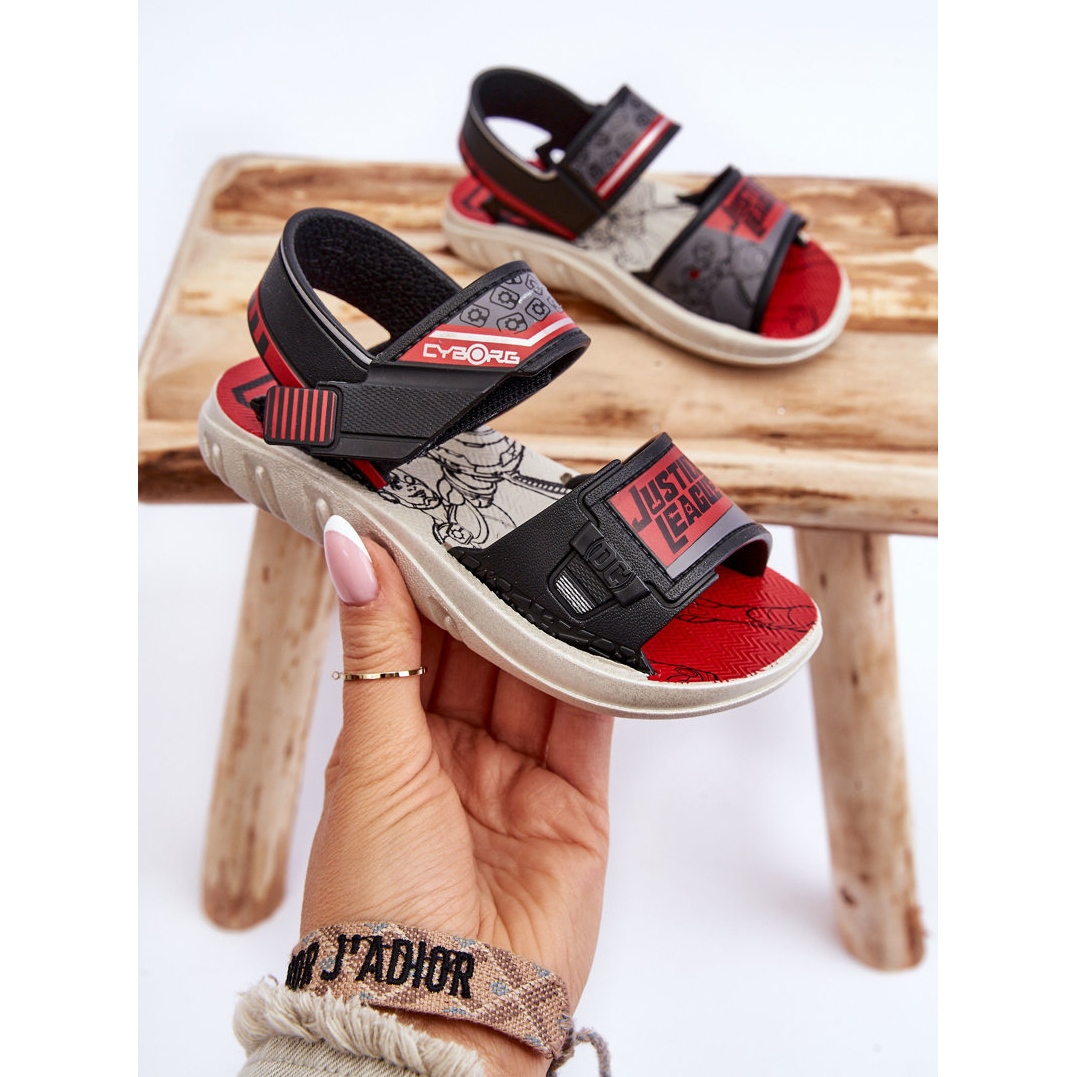 Kindersandalen Grendene Kids JJ385011 - Stil und Bequemlichkeit für kleine Fans der Justice League. Das leichte, flexible Plastikdesign und ein bequemes Klettverschluss lassen Schuhe leicht anziehen und an den Fuß des Kindes angepasst. Das charakteristische schwarze und rote Motiv mit der Figur aus der Justice League wird einen modischen Akzent für jeden Sommerstilisierung verleihen.