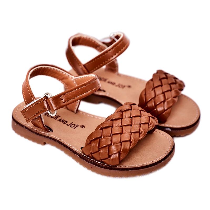 Leichte Sandalen für Mädchen aus ökologischem Leder in einem modischen, warmen Kamel/braunen Farbton. Das 283-3C-Modell zeichnet sich durch ein subtiles Geflecht auf dem Gürtel aus, das Charakter verleiht und die Schuhe perfekt sowohl Sommerkleider als auch kurze Shorts passt.