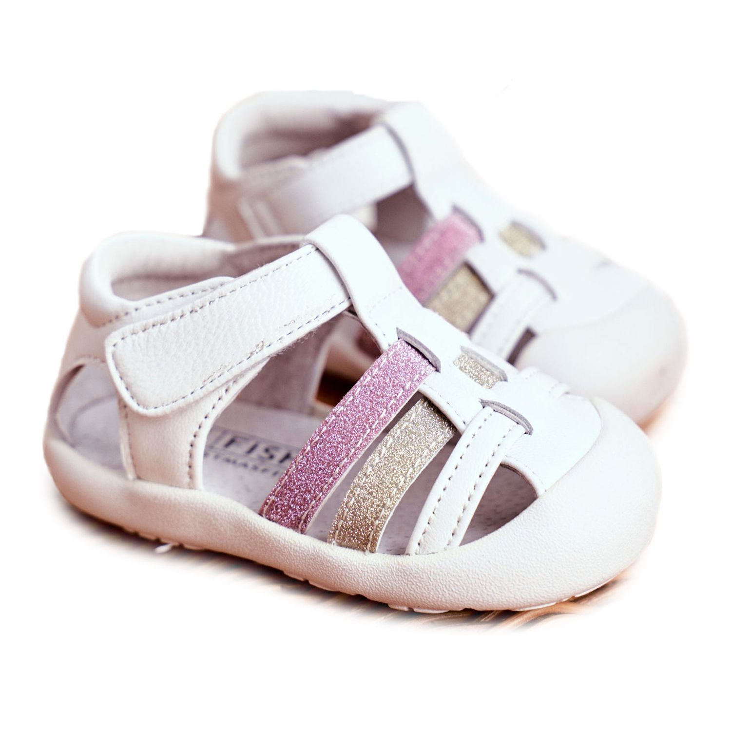 Apawwa Apawwa Kindersandalen mit Klettverschluss Glitzer Weiß Ontario rosa golden