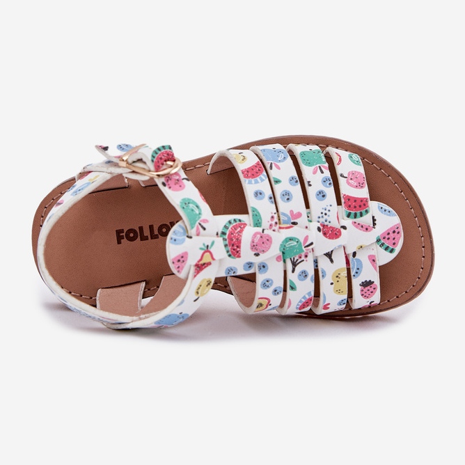 Details: Kindersandalen mit Öko -Leder in mehrfarbigen Früchten weiß