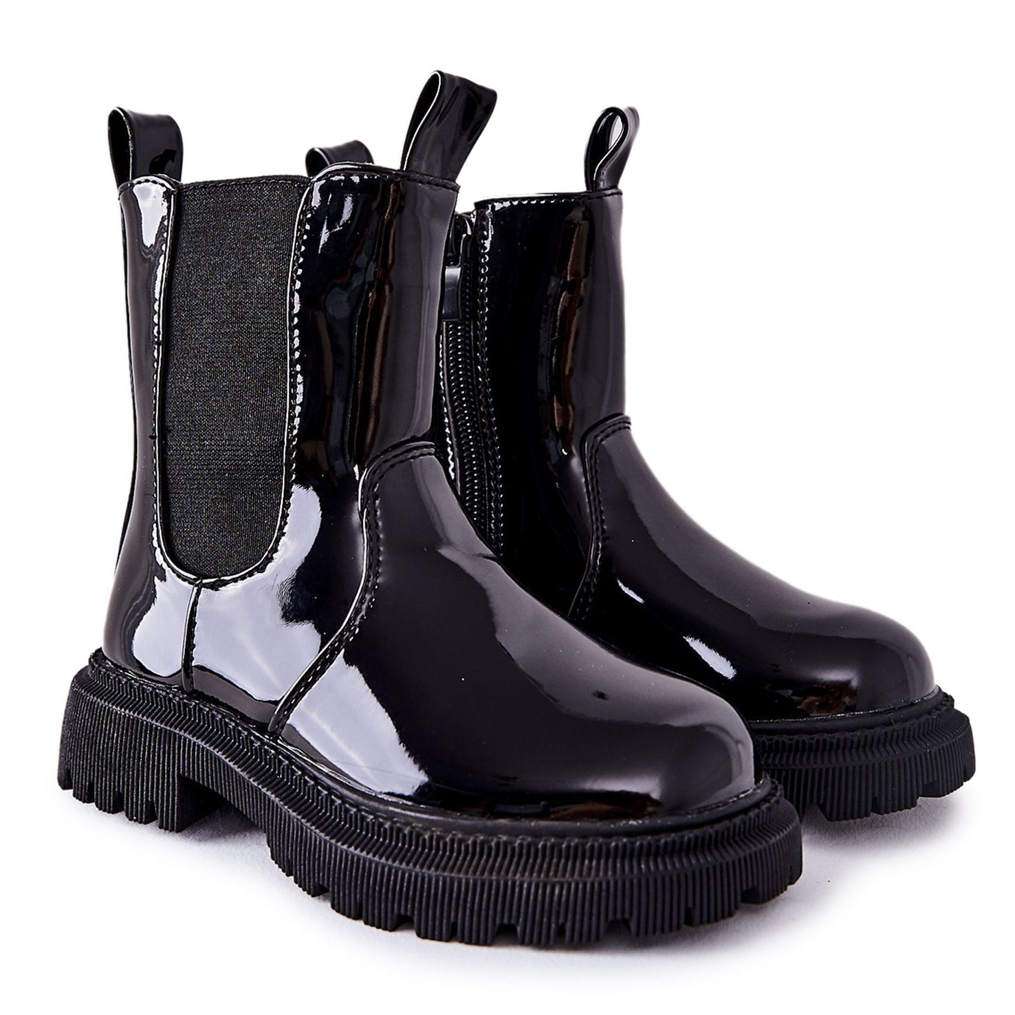 Dies sind stilvolle und bequeme isolierte Kinderstiefel, lackiert in der modischen schwarzen Farbe, vom Hersteller FR1. Diese Stiefeletten sind die perfekte Wahl für kleine Damen, die modisch aussehen möchten, ohne auf Komfort zu verzichten. Sie bestehen aus hochwertigem ökologischem Lackleder und begeistern nicht nur durch ihre Ästhetik, sondern auch durch ihre Praktikabilität.