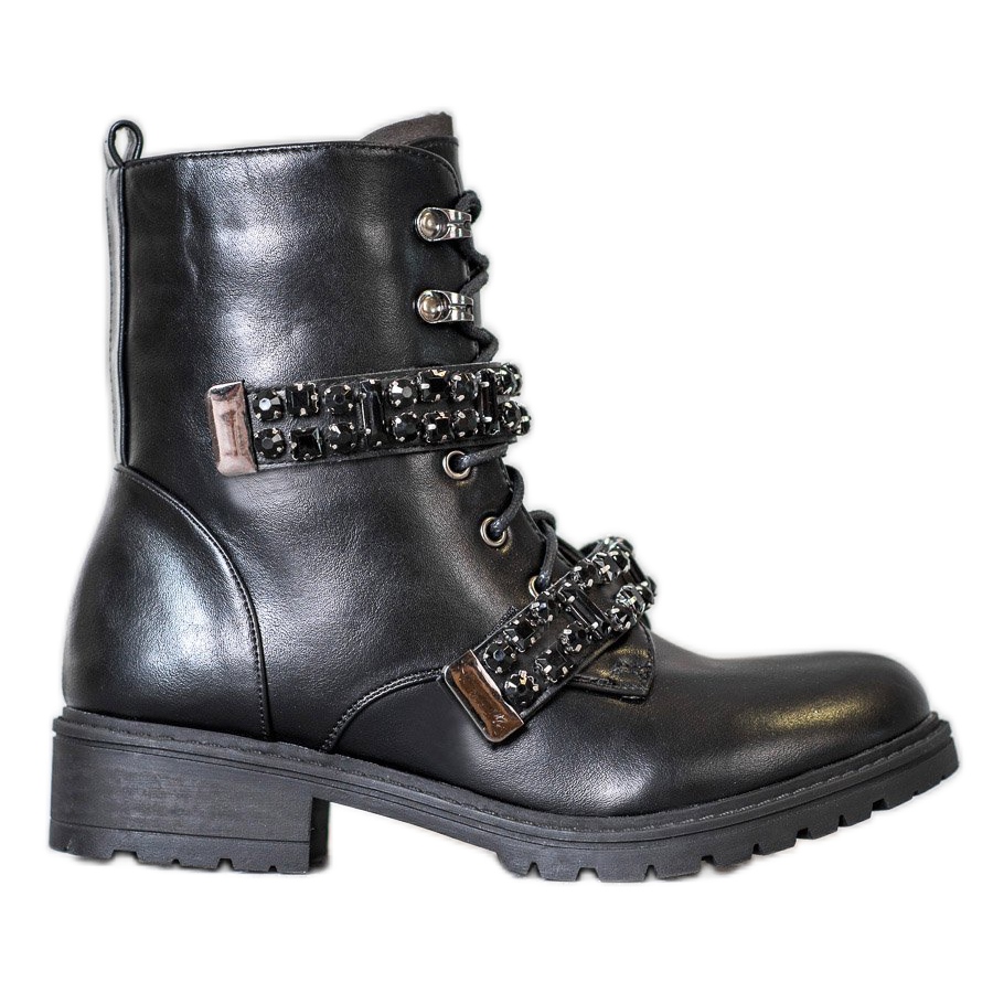 Das Worker-Design ist mit eleganten Streifen mit schwarzen Strasssteinen verziert, die dem Ganzen einen raffinierten Charakter verleihen, und die runde Spitze sorgt für Komfort für die Finger. Diese Schuhe eignen sich perfekt für den Freizeitstil und sind die perfekte Alltagswahl in der Herbst-/Wintersaison. Durch die wärmende Innenseite bleiben Ihre Füße auch an kälteren Tagen angenehm warm.