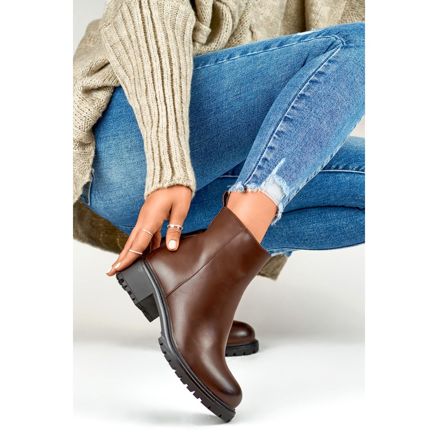 Inna marka Klassische braune Damenstiefeletten aus Öko-Leder