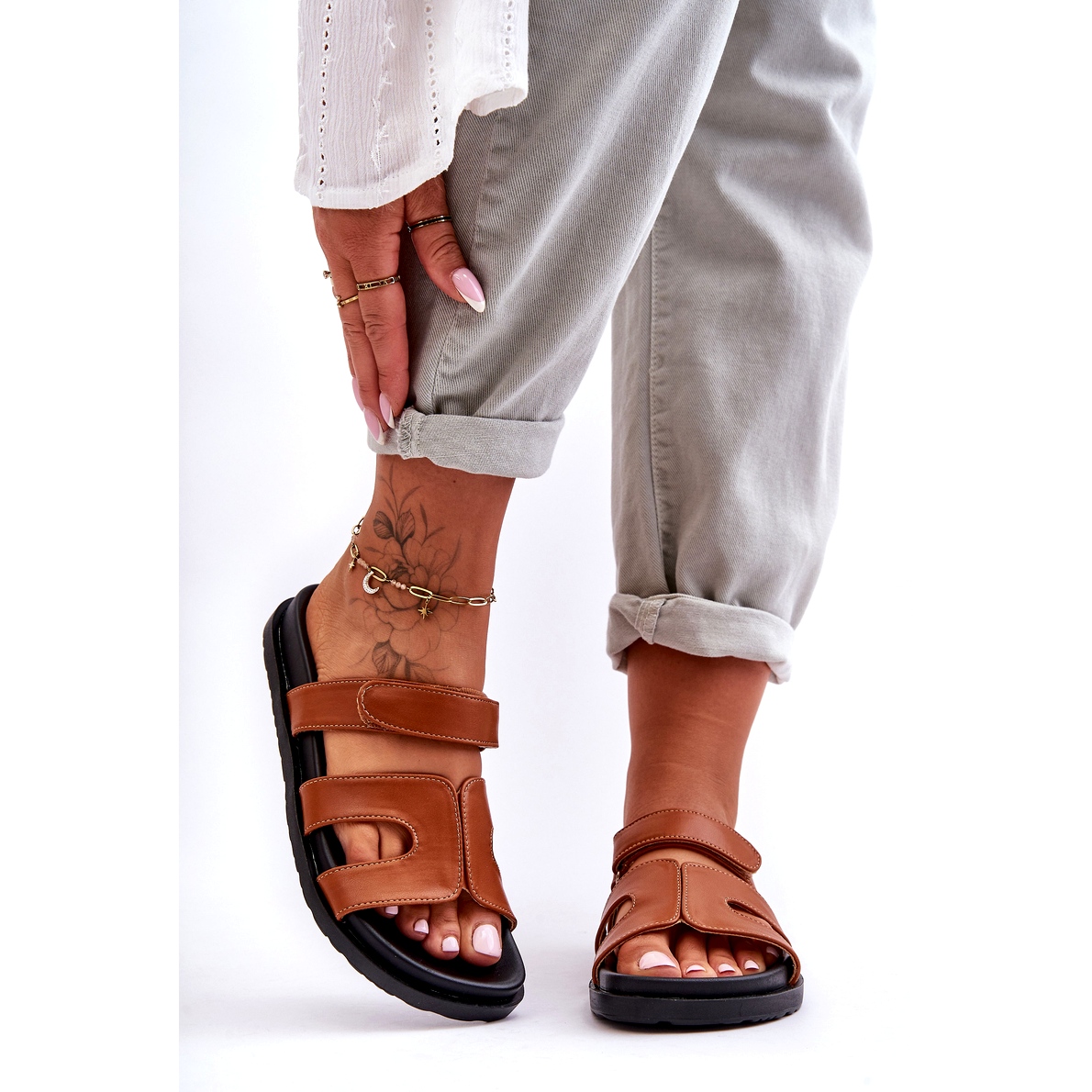 Details: Joia Klassische Damen-Flip-Flops aus Leder mit Klettverschluss, Braun