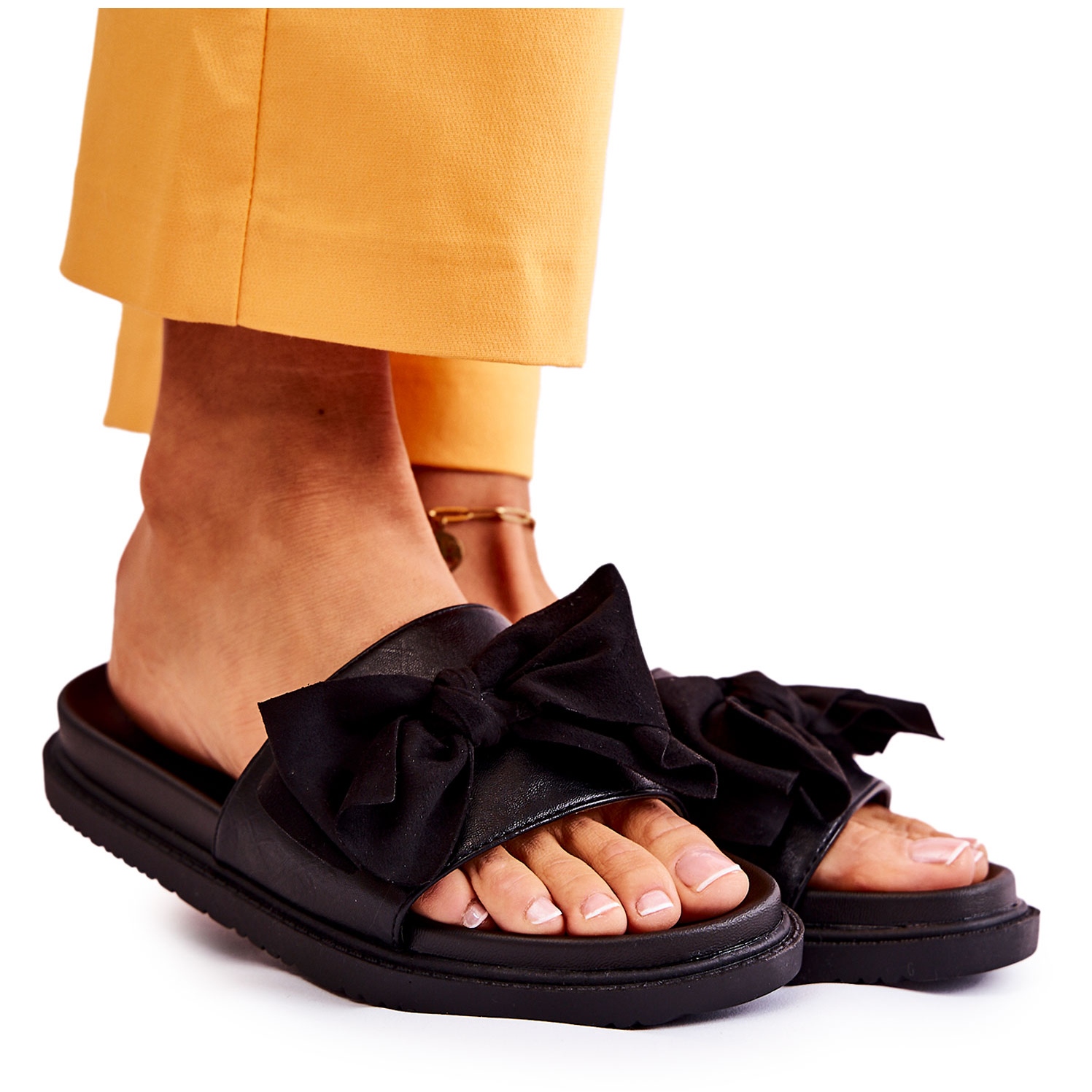 Details: PJ1 Klassische Damen-Lederpantoffeln mit einer Schleife Black Dessy schwarz
