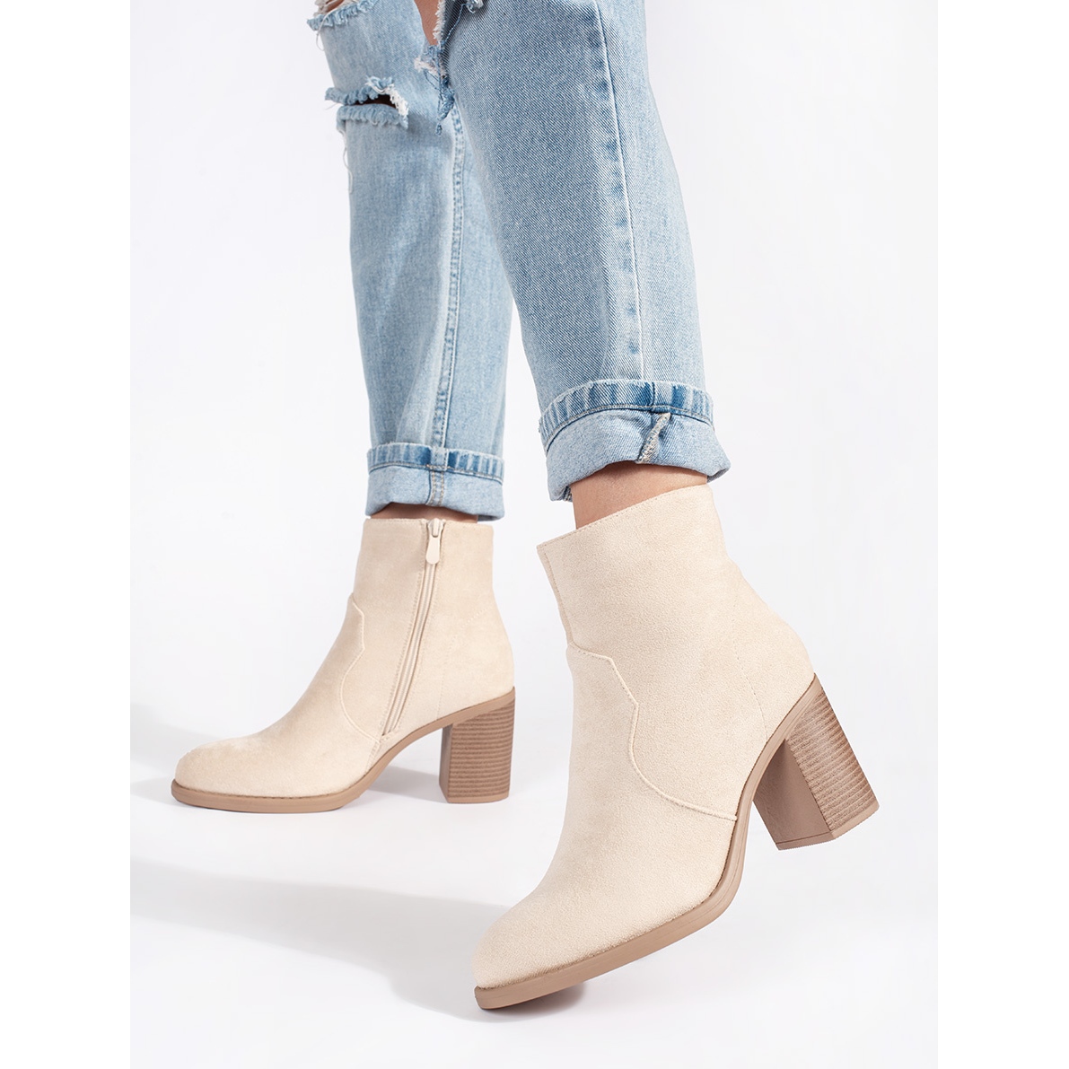 Inna marka Klassische Damenstiefeletten aus beigem Wildleder